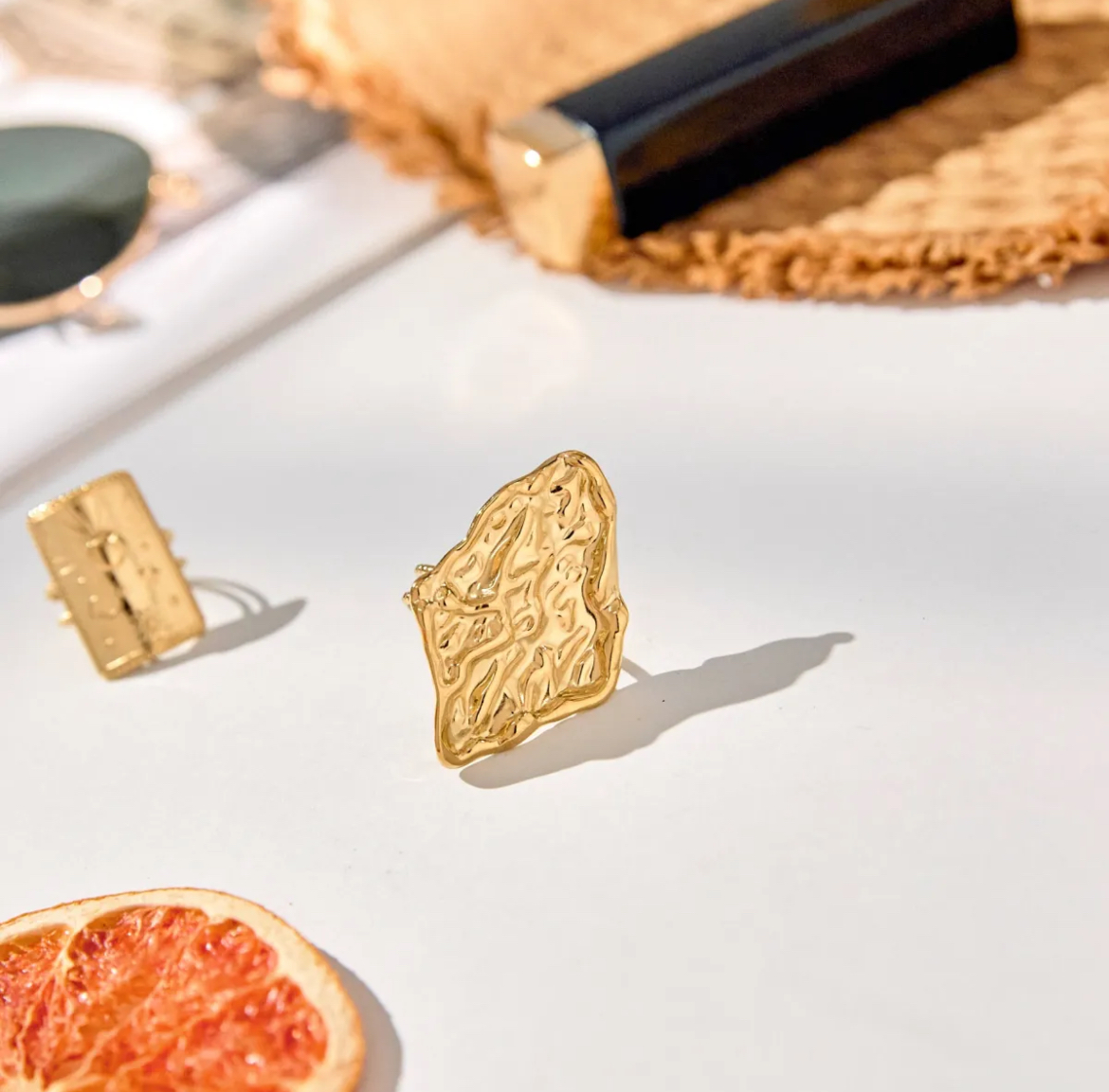 Sophistiquée et moderne, cette bague en acier inoxydable doré séduit par son design en Or frappé pour plus d’élégance.
