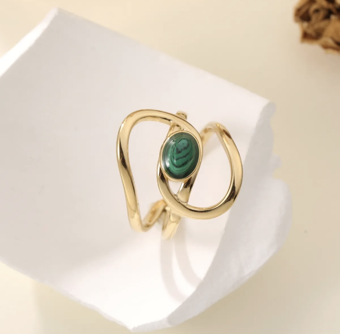 Bague Ondulation & Pierre Verte en Acier Inoxydable ✨