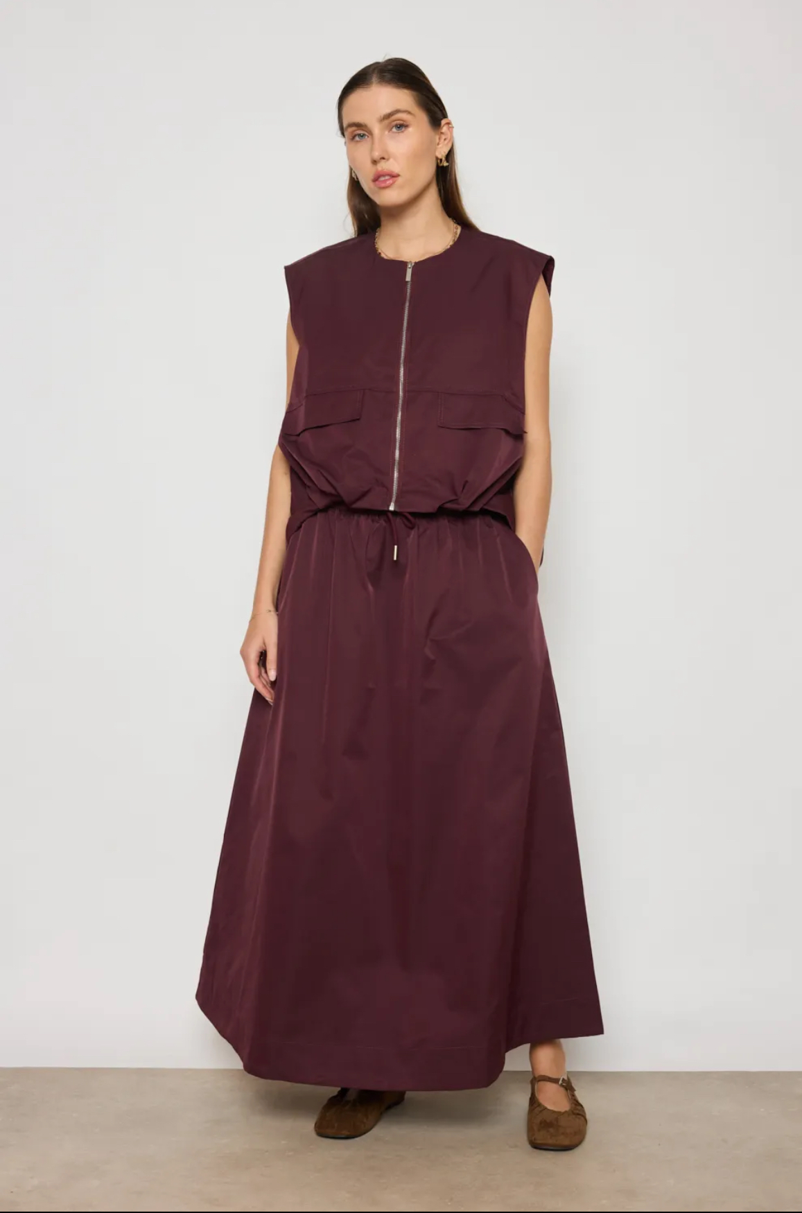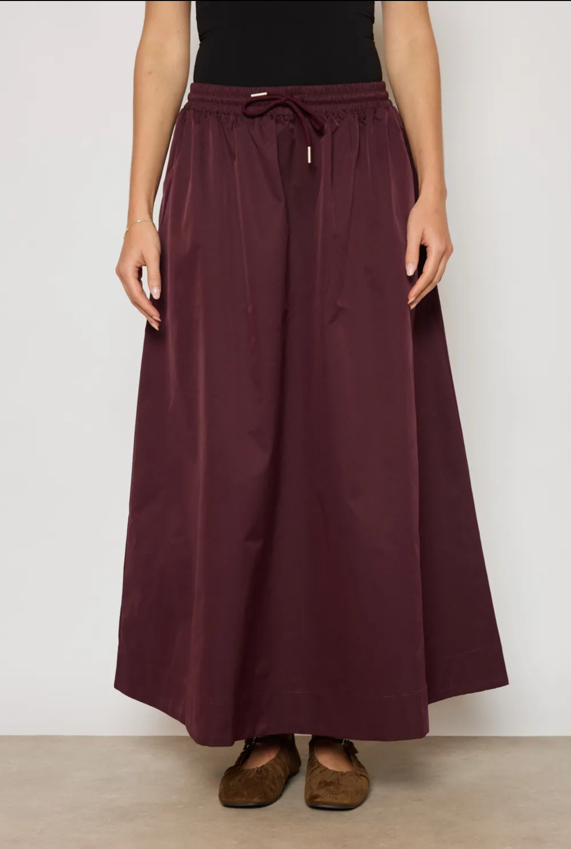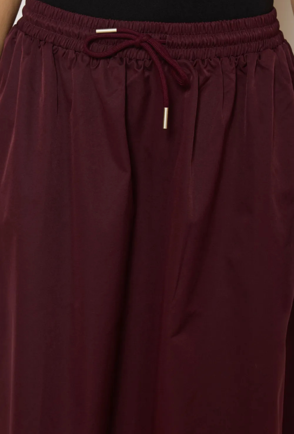 Coupe évasée avec élastique à la taille, poche et cordons. Adaptée à toutes les morphologies.