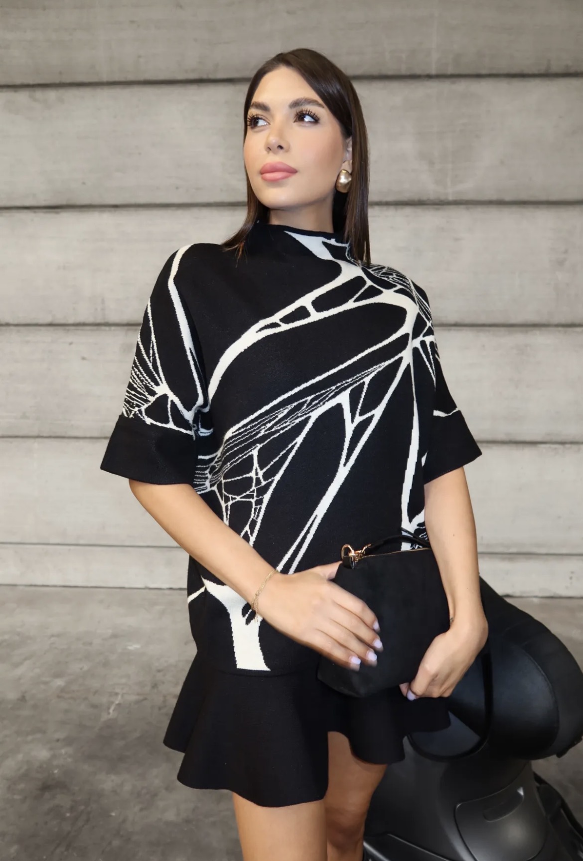 Ce pull en maille noir à motifs blancs séduit par son style à la fois chic, graphique et très tendance. Son col montant apporte une touche élégante et structurée, idéale pour la saison automne-hiver.