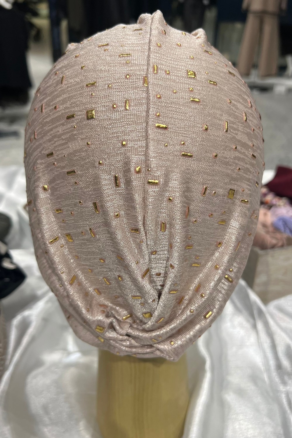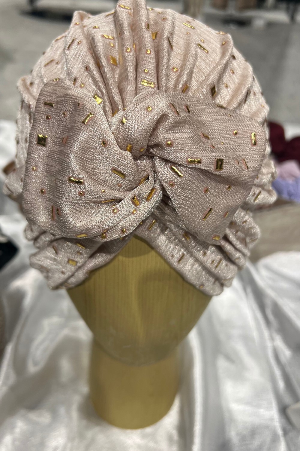Turban à noeud beige et doré