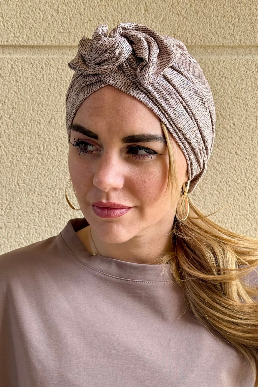 Turban lycra, très léger et agréable à porter avec noeud intégré pouvant être modulé à l’infini.