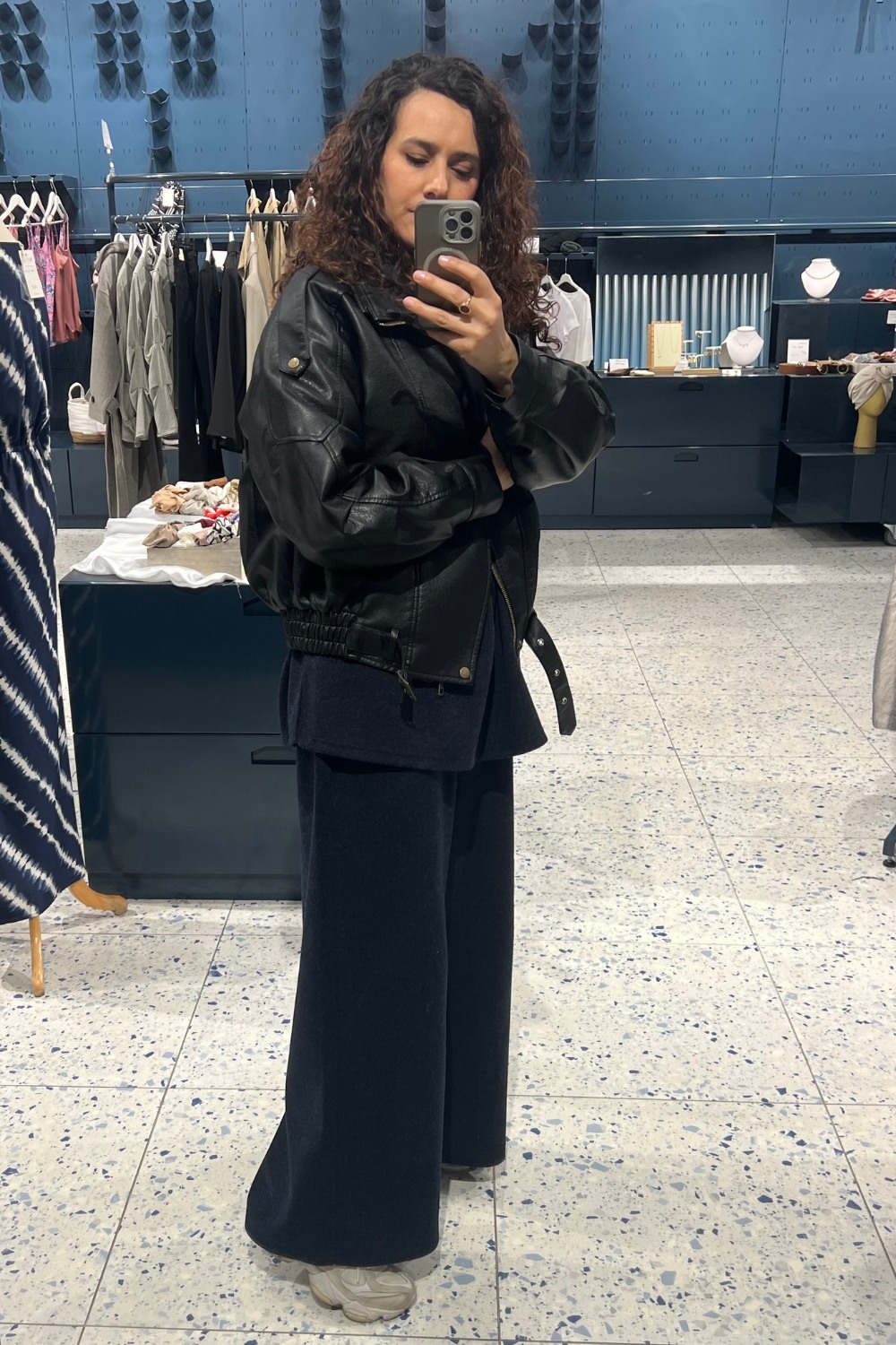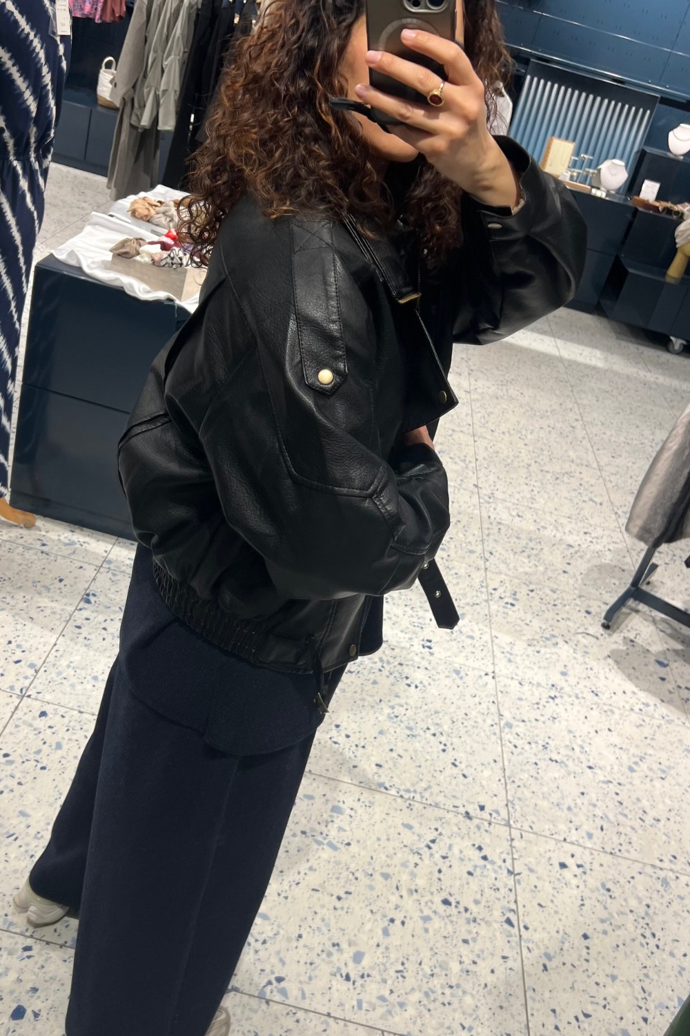 Inspirée des tendances actuelles, cette veste en simili-cuir revisite l’iconique bomber aviateur dans une version courte et oversize, ultra mode.